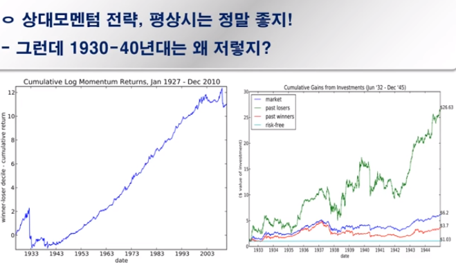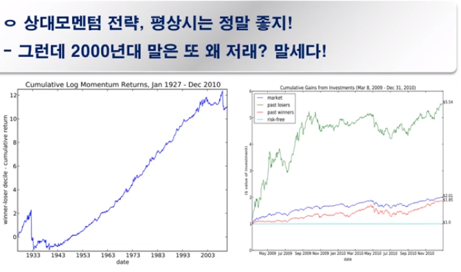 대표적으로 대하락장으로 불리는 시기인데, 상대모멘텀 전략은 좋지않았다.